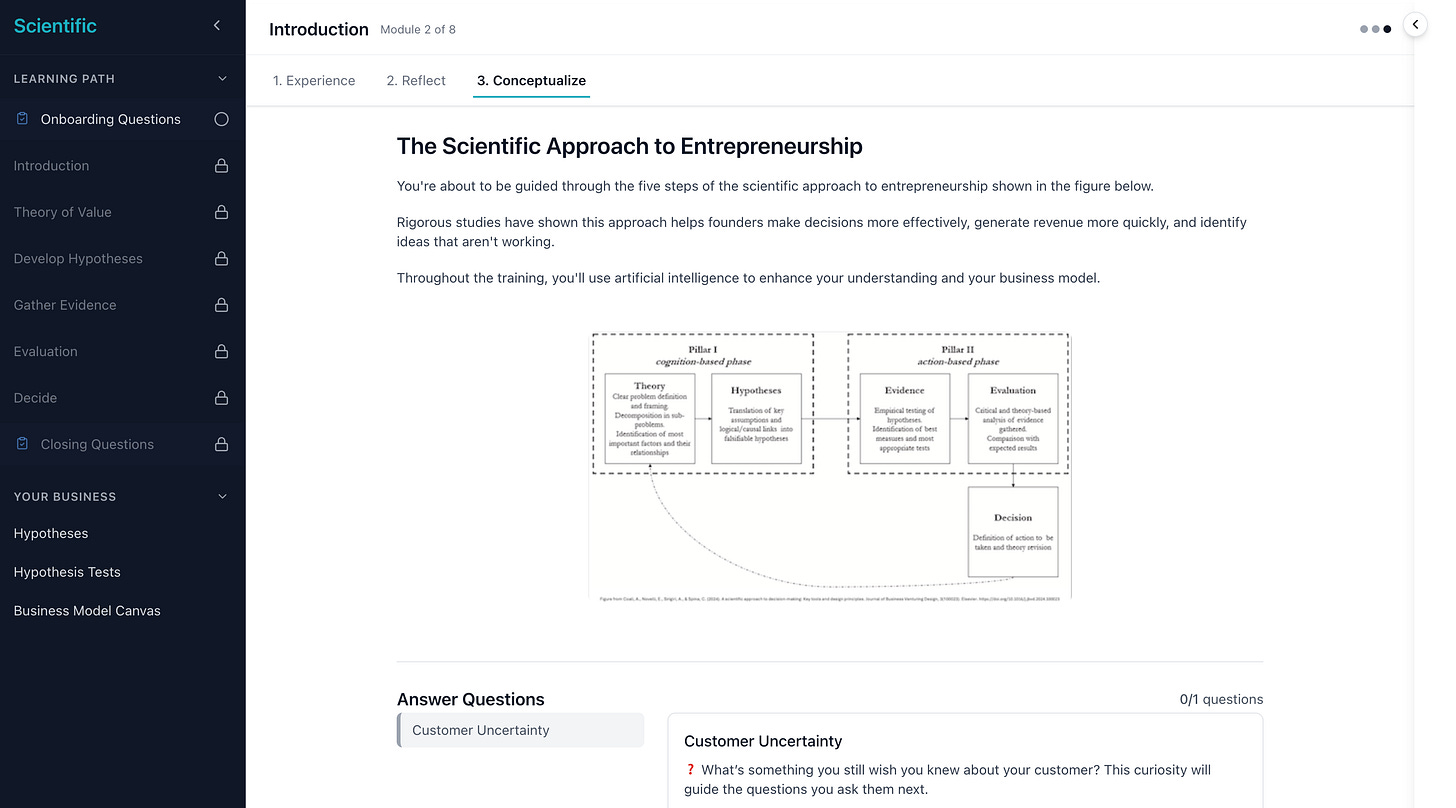 With the help of entrepreneurship educators like yourself, we will run a field experiment to train hundreds of entrepreneurs in the scientific approach, and explore how AI-powered training tools designed specifically to teach can help.